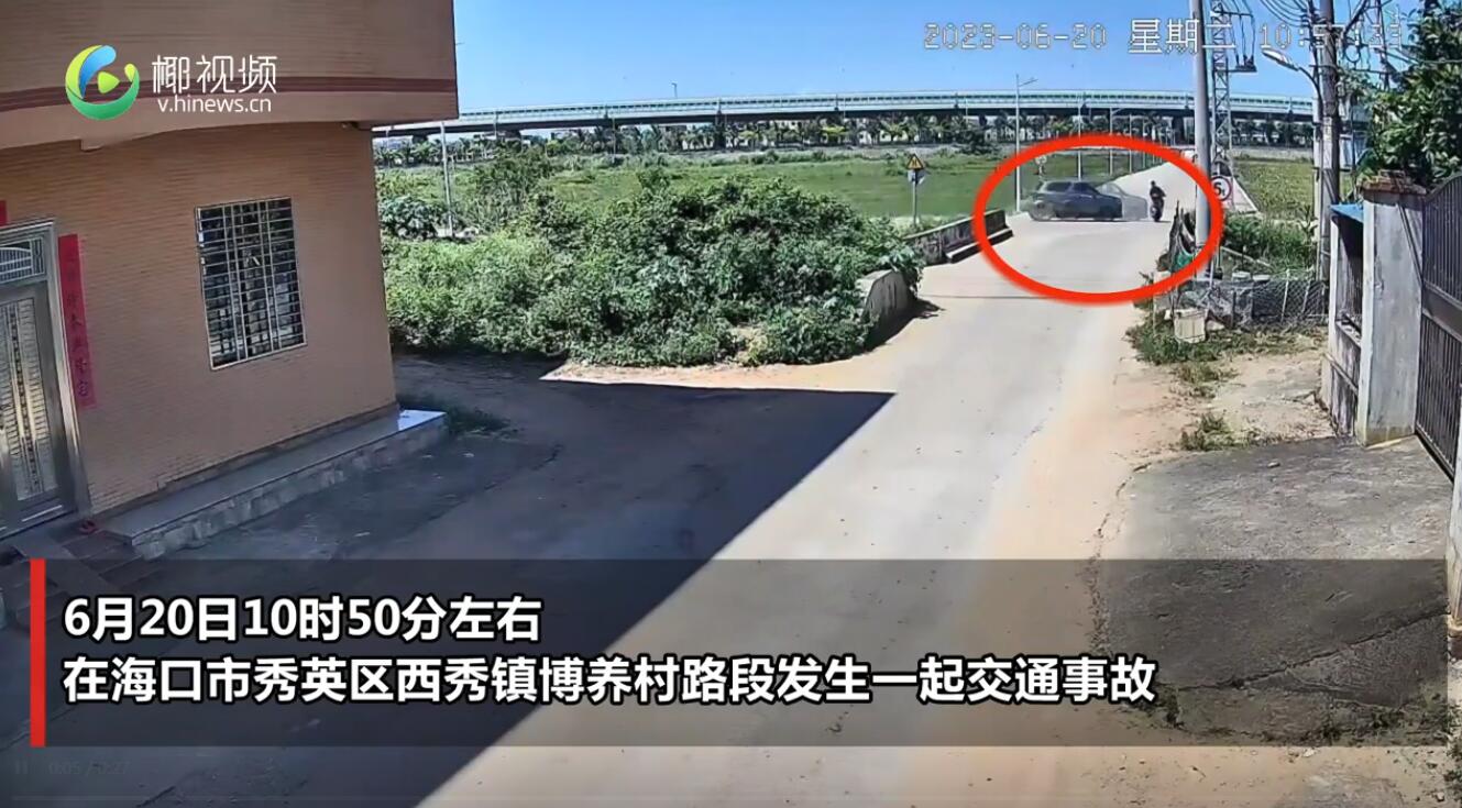椰视频 | 海口一汽车经过路口时瞬间撞飞电动车双双坠入农田 交警提醒:经过交叉路口记得减速慢行
