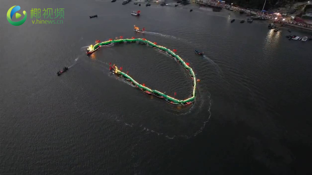 椰视频 | 渔船连成百米长“巨龙” 万宁老爷海上演“双龙闹海”