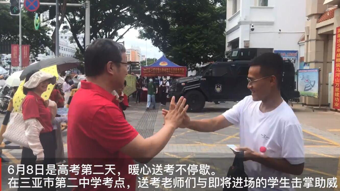 椰视频 | 三亚送考老师与考生击掌送祝福