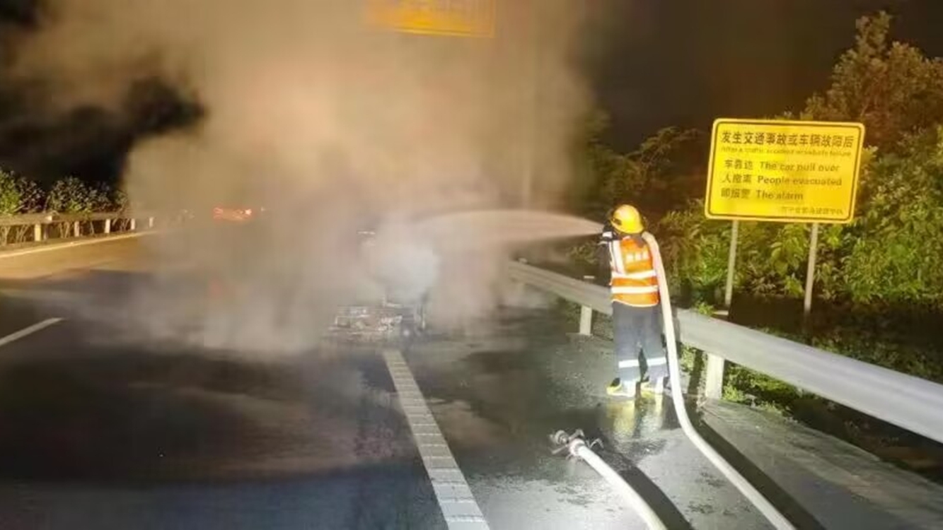 椰视频 | 报废车辆运输中突起大火 万宁消防迅速处置