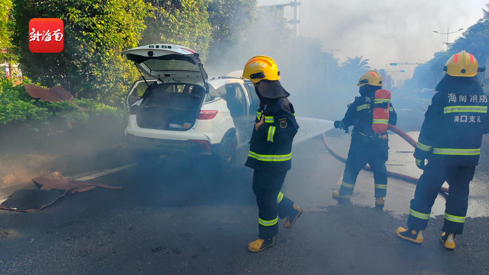 椰视频 | 海口一新能源车行驶路上莫名冒烟 消防部门出警紧急处置