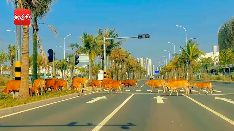 椰视频 | 牛羊群屡次上公路“散步”存安全隐患 海口交警普法相关道路规则