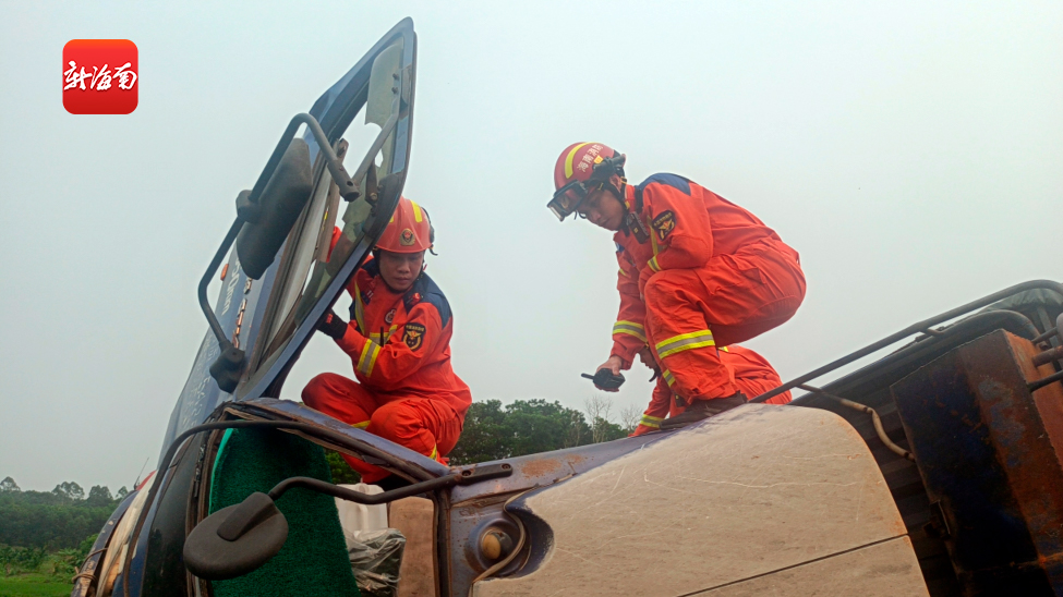 椰视频 | 货车高速路上侧翻司机被困 澄迈消防出动救援