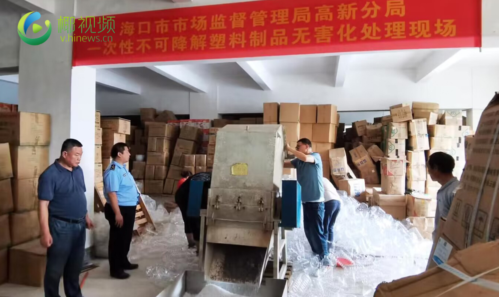 椰视频 | 罚没的一次性不可降解塑料制品如何处理?海口市市监局高新分局无害化处理并回收利用