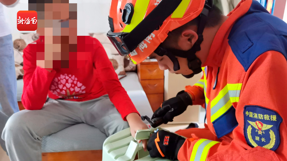 椰视频 | 男孩手指被卡塑料椅孔中 海口龙华消防上门帮其取出