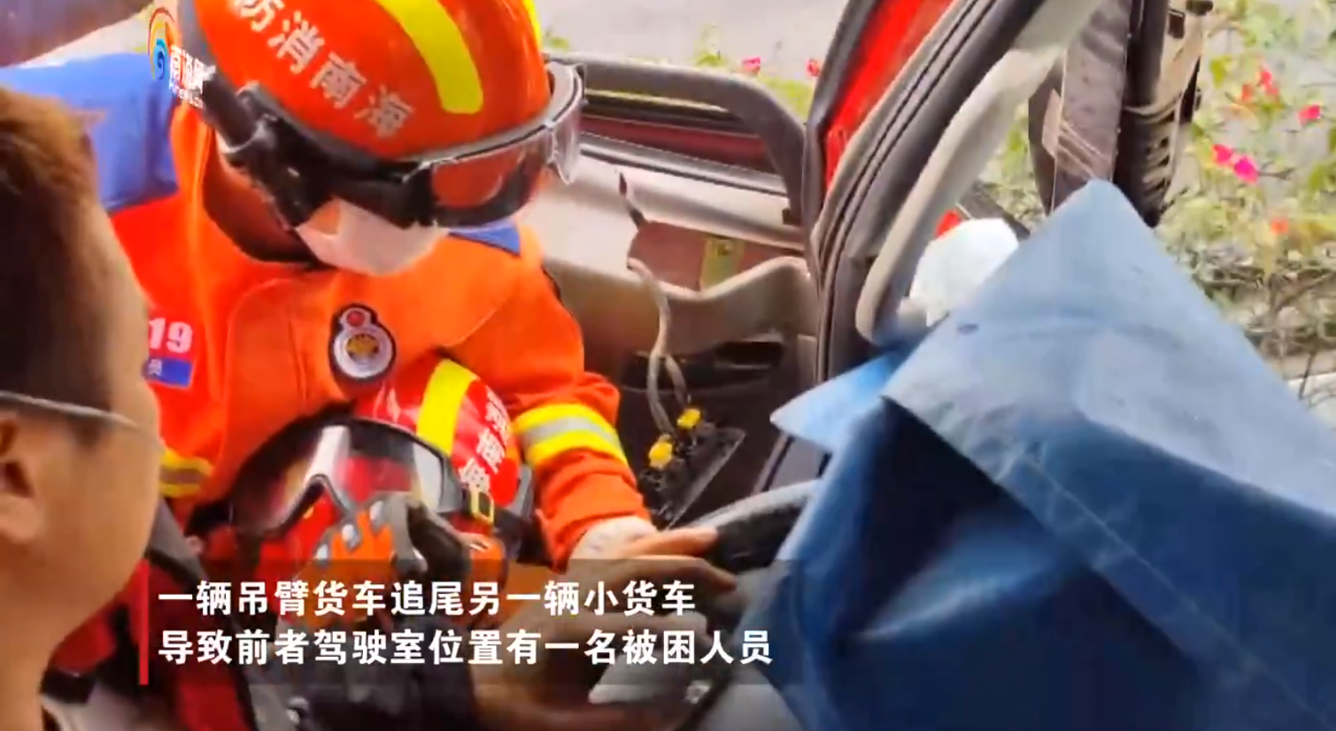 椰视频 | 海口绕城高速发生货车追尾 消防出动解救被困人员