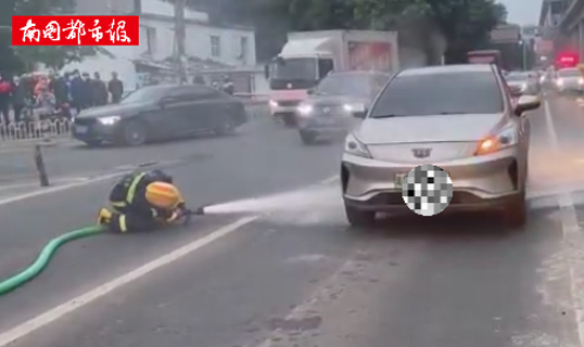 椰视频丨 海口一帝豪新能源车电池着火 消防人员及时处置