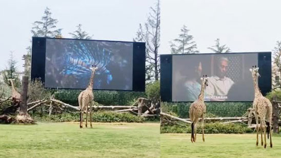 长颈鹿爱上看电视 凭借过人身高抢占C位