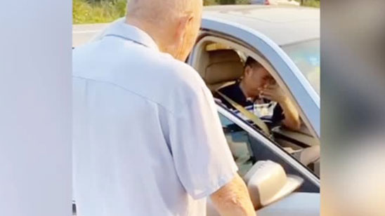 暖心!老人行走缓慢身后车队耐心等待无人鸣笛