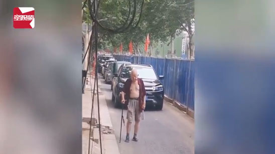 老人马路上步履蹒跚 身后整队车开启“静音模式”