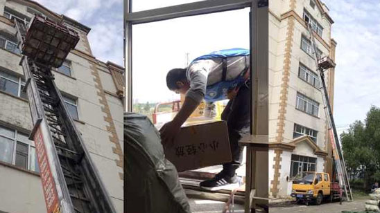 高校雇云梯帮9千毕业生空运行李 包裹从宿舍6楼下1楼仅30秒