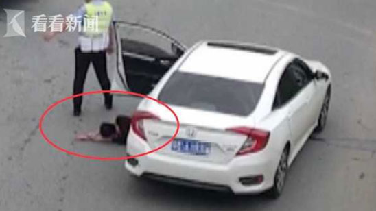 车行驶途中突然后溜 交警打开车门司机直接滚出