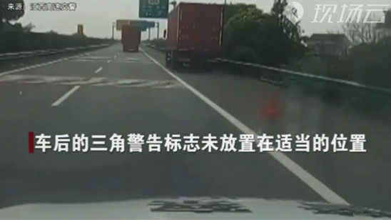 货车高速上故障停车 司机这样放三角牌竟甩锅给风