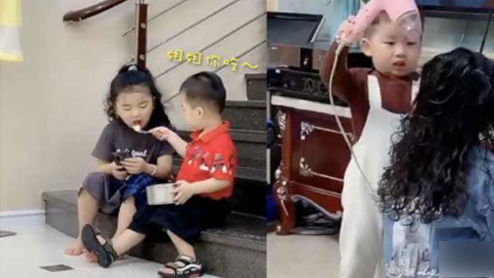 太暖了!喂饭背书包吹头发 2岁弟弟花式宠5岁姐姐