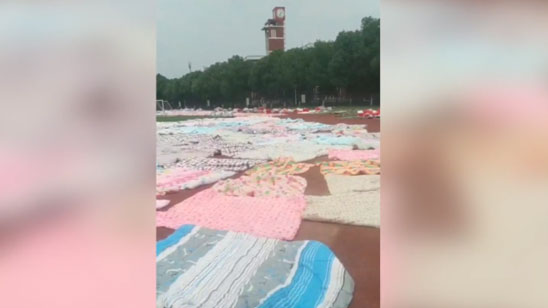 60名老师晾晒2000床储备被褥 保证千余名学生舒适返校参加专升本考试