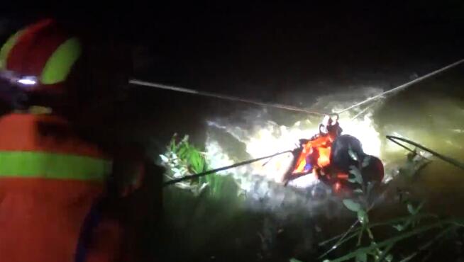 惊险!女子被湍急河水冲走 消防员渡河救援