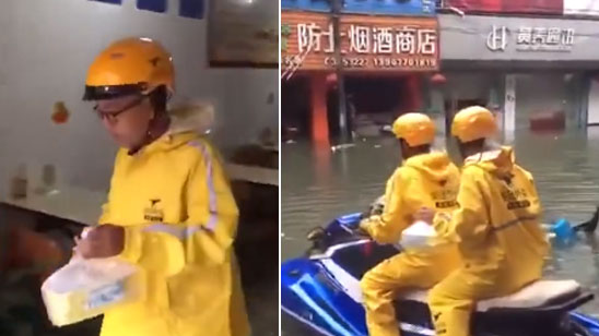 广西一地内涝小哥开快艇送外卖 网友:没点装备都不敢送餐了