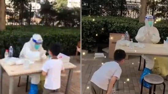 男孩核酸检测后向医护鞠躬致谢:谢谢你们!辛苦了!