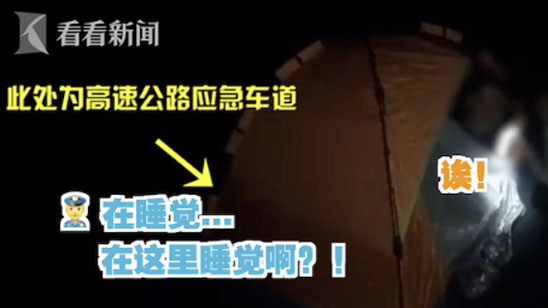 夫妻俩高速搭帐篷睡觉!交警:你们是开玩笑吗?