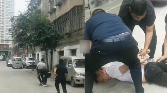 便衣警察抓捕持刀劫匪 从后面悄悄跟上 一招抱腿顶摔瞬间将其放倒