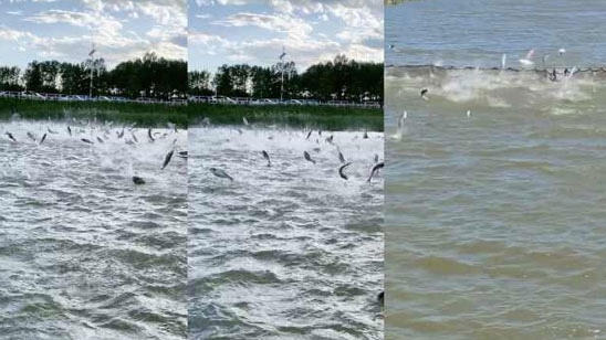壮观!查干湖胖头鱼齐跃龙门 渔民:温度升高鱼群聚集缺氧