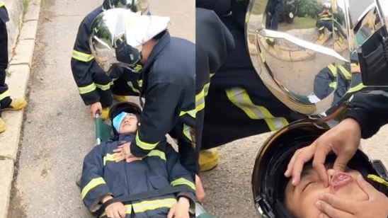 消防员训练翻车现场:蓝朋友练习人工呼吸 看一眼“伤员”瞬间笑喷