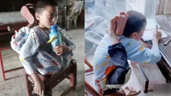 11岁娃轻松反盘脚到后脑勺 妈妈:关节骨缝大 从小就能这样