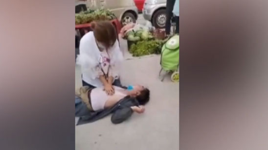 沈阳一老汉突然倒地 女护士跪地人工呼吸急救:没考虑疫情