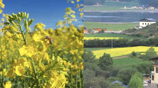 香格里拉6月油菜花开 纳帕海旁千亩金黄