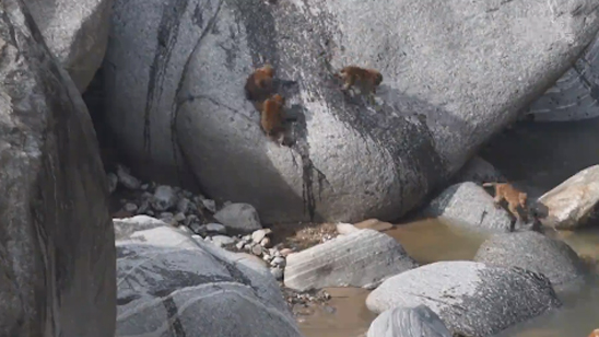 罕见!国家一级保护动物熊猴群聚大盈江嬉戏玩耍