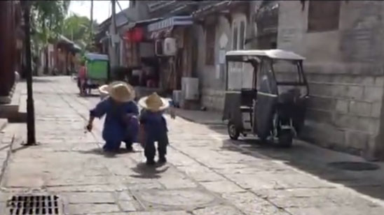父子青衣斗笠扮侠客捡垃圾:又做公益又圆侠客梦