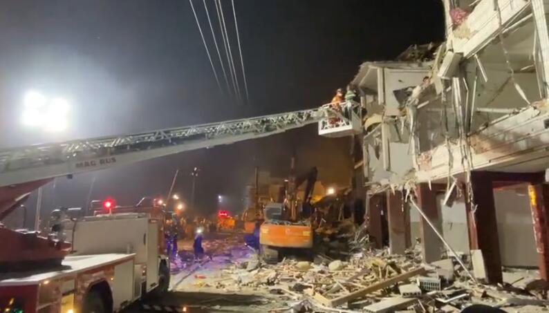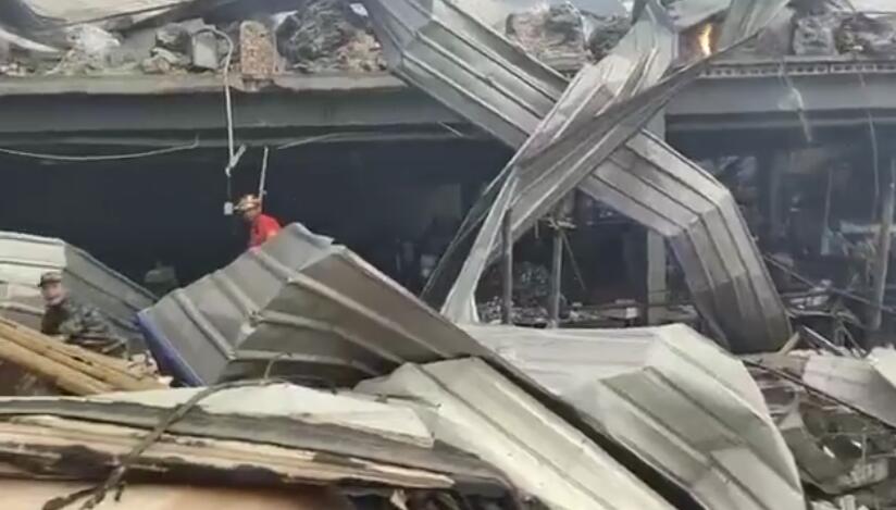 浙江温岭油罐车爆炸救援现场 周边民房及厂房倒塌