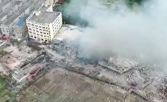 浙江温岭油罐车爆炸航拍画面:房屋被炸成一片平地 废墟上浓烟不断升起