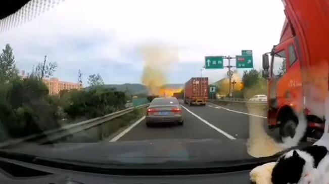 浙江台州一油罐车爆炸瞬间有不明物飞出