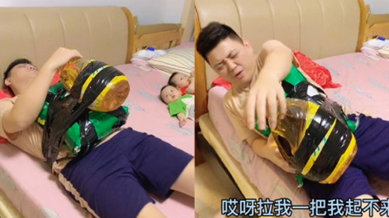 老公花式体验“孕晚期”,数十斤米油腰间绑,网友笑喷:太真实了
