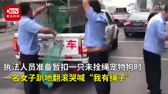 遛狗不拴绳狗被暂扣主人大哭:我有绳子! 执法人员回怼:为何不牵着?