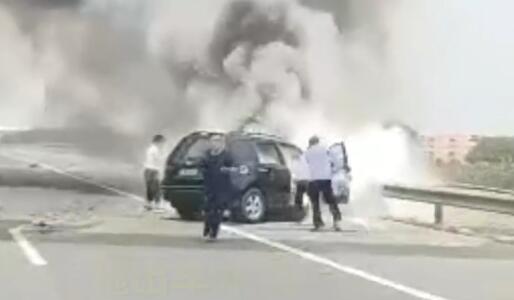 从冒火车辆逃出后5分钟爆炸 消防员用刀割断安全带抢时间救人