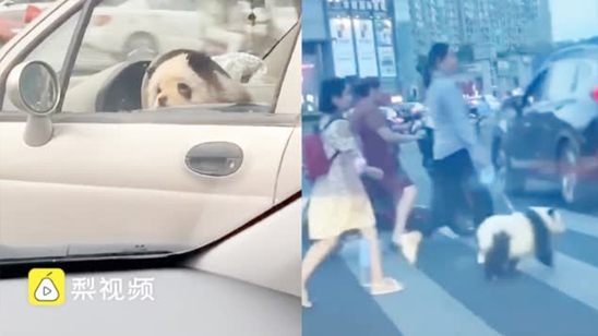 四川乐山“大熊猫”逛街成网红 隔天被交警逮到“开车”