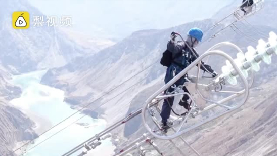 实拍3电力工人跨金沙江走线:距地逾400米,45°斜坡身轻如燕