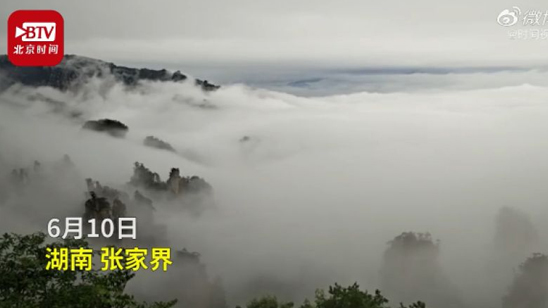 绝美!张家界天子山雨后现流云飞瀑 市民:四季少见