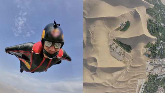 “亚洲翼装飞行第一人”飞跃敦煌:高空看沙漠绿洲是一种享受