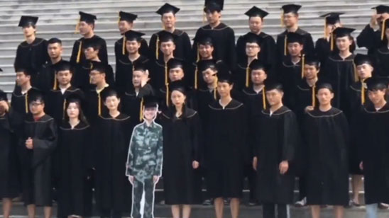 女生当兵回不来 同学做人形立牌合拍毕业照:全班要整整齐齐