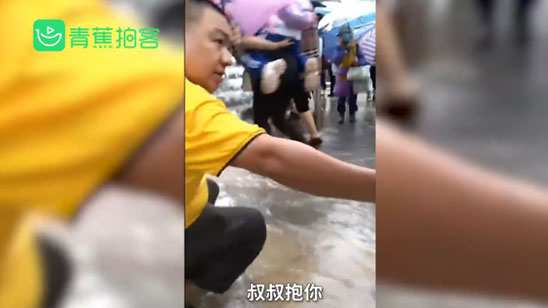 谢谢你的善良!贵州暴雨黄衣哥抱小孩过积水路段