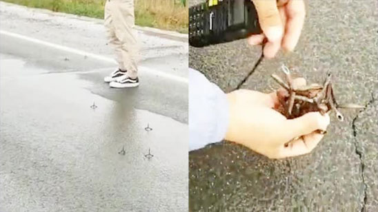 网曝河北一公路上布满铁钉 多车经过被扎爆胎 警方通报揭秘罪魁祸首