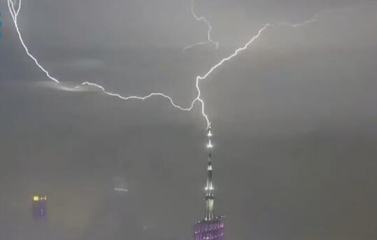 广东持续暴雨 网友拍下雷击广州塔震撼全过程