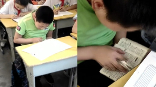 萌娃数学考试上低头“翻书”,老师走近一看顿时乐翻了
