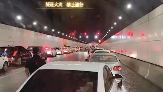 教科书式让路!南京长江隧道车辆失火 晚高峰百余车让出救援通道