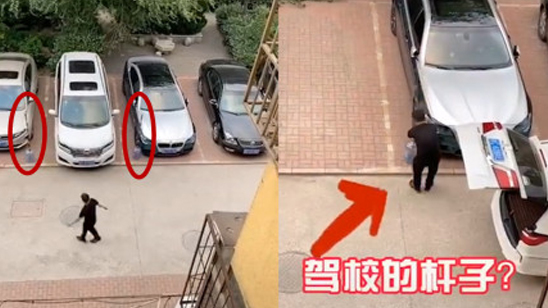 司机“教科书式”倒车入库:停车位旁插两杆 笑哭众人