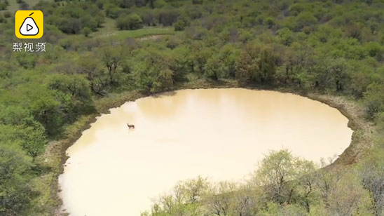 美!神农架现野生梅花鹿:雌雄一对饮水小憩 湖泊中成水彩画