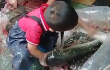 小朋友杀鱼去鳞手法熟练 网友:再不开学可以继承父业了